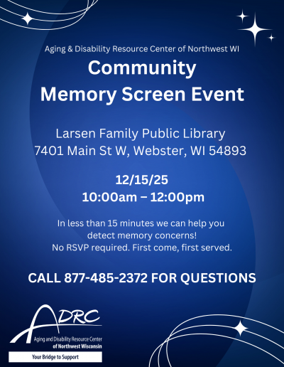 Programs are held either in-person or virtually, depending on multiple factors. In-person programs are often hosted by community partners such as libraries and senior centers across Polk and Burnett counties. Online programs are typically hosted on Zoom, sometimes in partnership with other organizations or other ADRC locations.